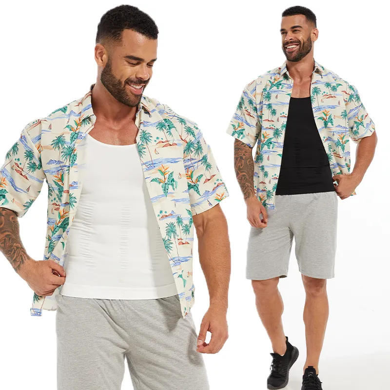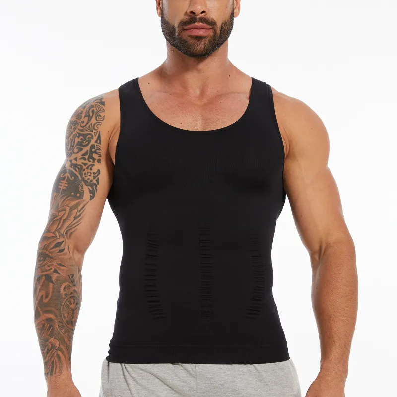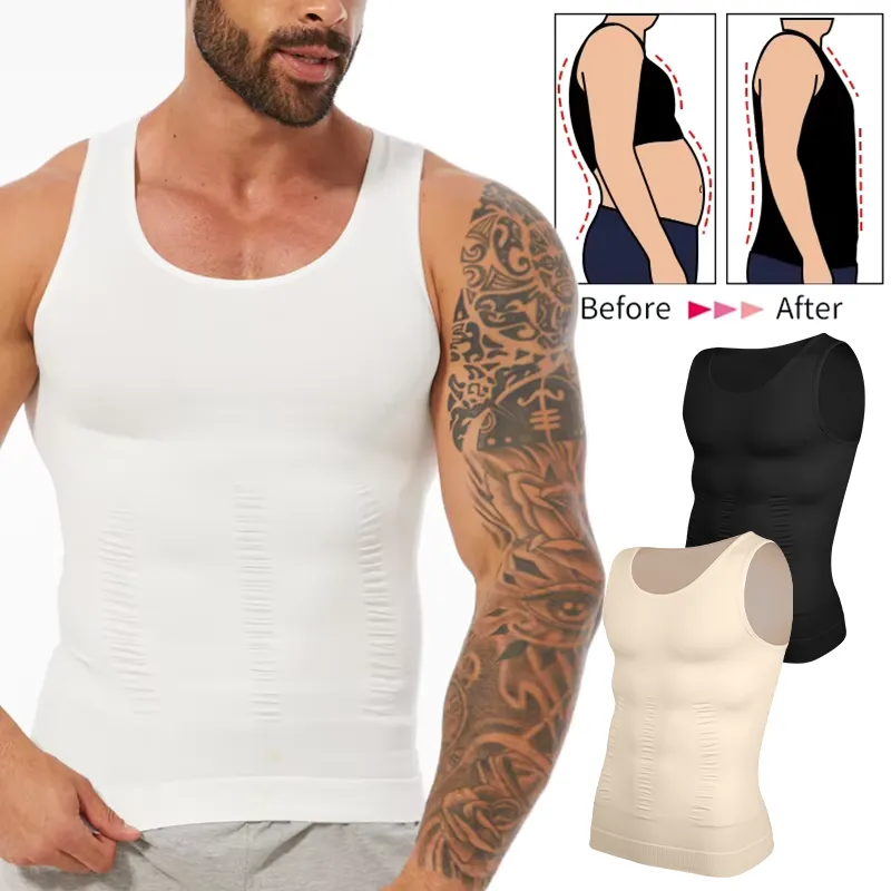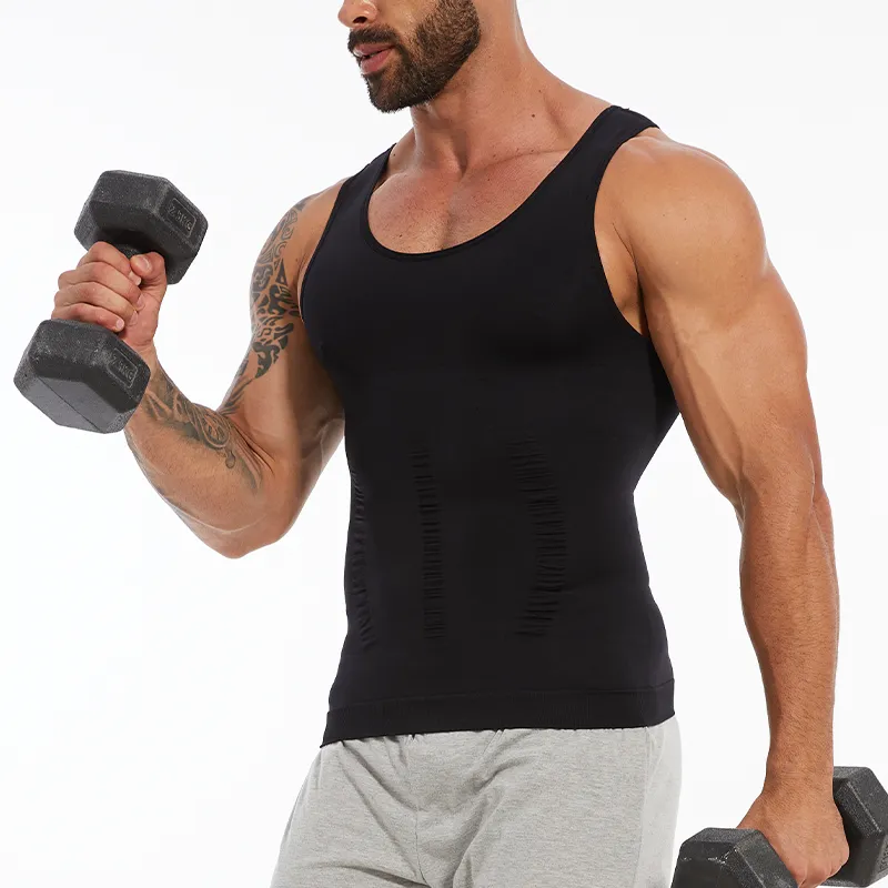 Compression Shirts Men Tummy Control Shapewear Compression Shirt Flat Belly Abdomen Slim Vest Waist Trainer Fitness Workout