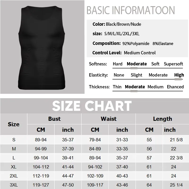 4 Matching with all types of clothing,such as workout shirts, t-shirts, sweaters and formal dress shirts,you will shape nice body figure after you wear this man body slimming vest.